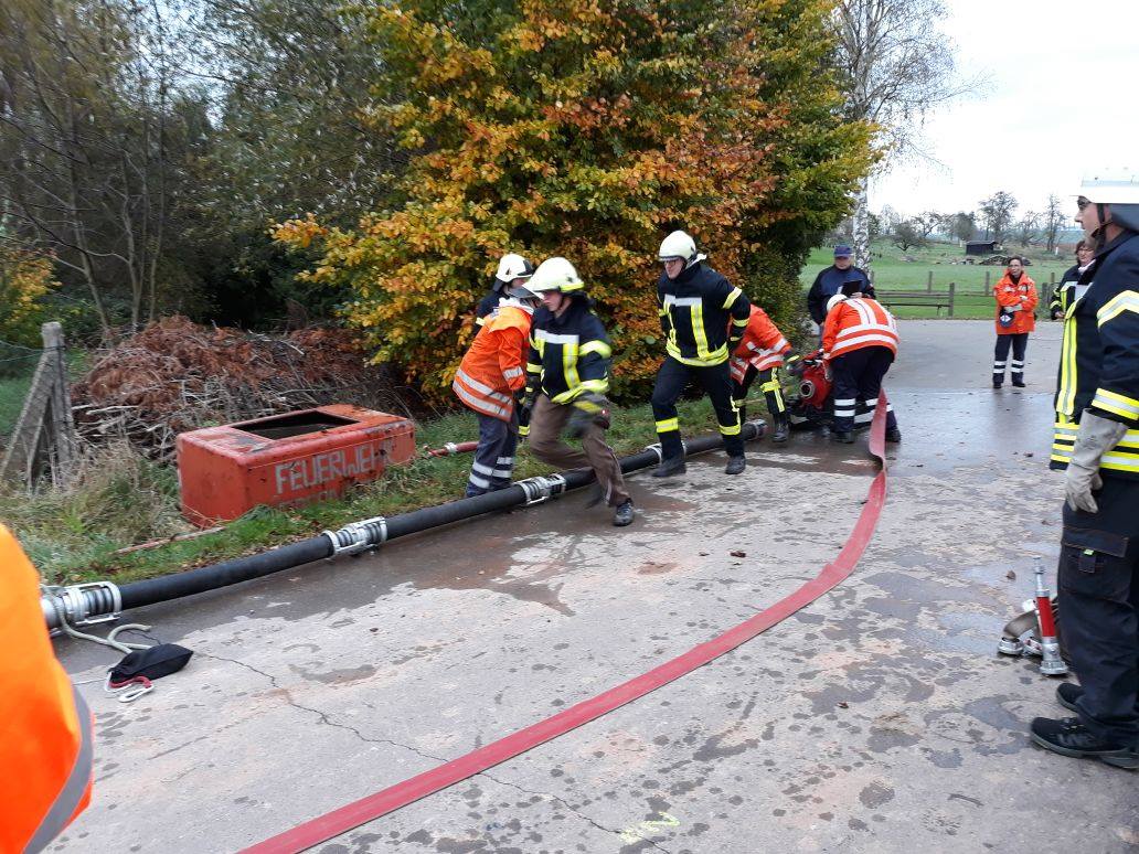 | Juxwettkämpfe 2017 Am 28.10. beendete die Obernfelder Feuerwehr das Übungsjahr mit den "Juxwettkämpfen", wobei dieses Mal 4 Mannschafften unter Wettkampfbedingungen gegeneinander antraten. Die einzelnen Gruppen wurden dabei ausgelost, sodass jeder Teilnehmer sein Können unter Beweis stellen musste. Nach den Wettkämpfen wurde der Abend mit der Siegerehrung und einem gemeinsamen Essen beendet. |